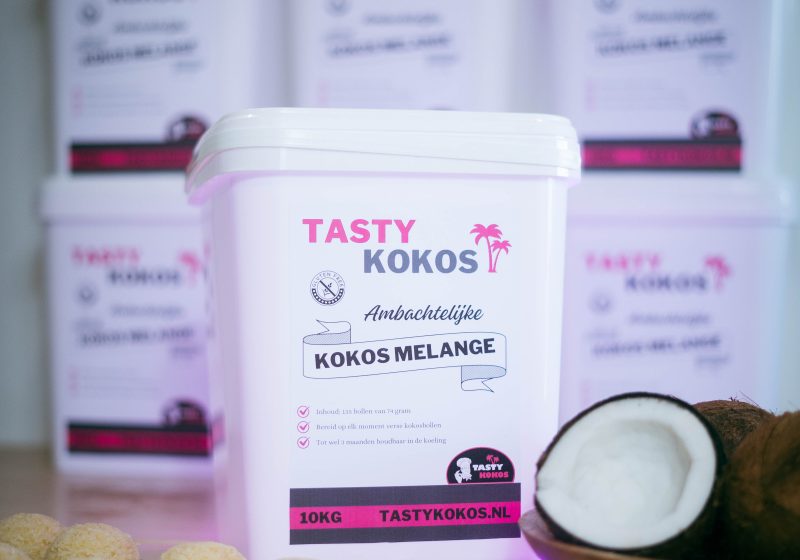 Deze emmer bevat 10.000 gram kant & klaar melange : voldoende voor 128 +/- kokosbollen.